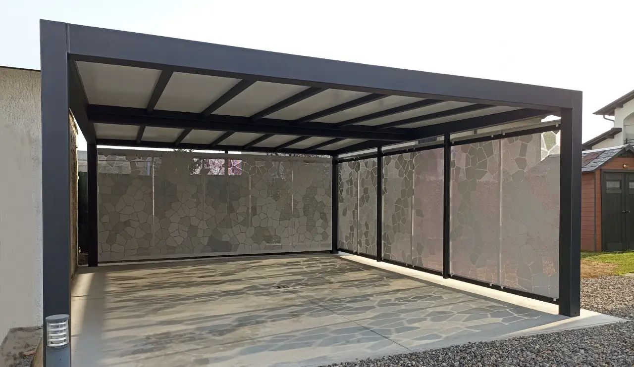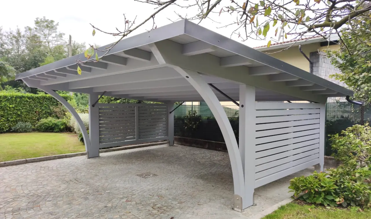 Scegli lo Stile: Deve armonizzarsi con l’architettura della tua casa. Un carport in alluminio si sposa con una villa moderna, mentre un carport in legno è perfetto per un rustico.
